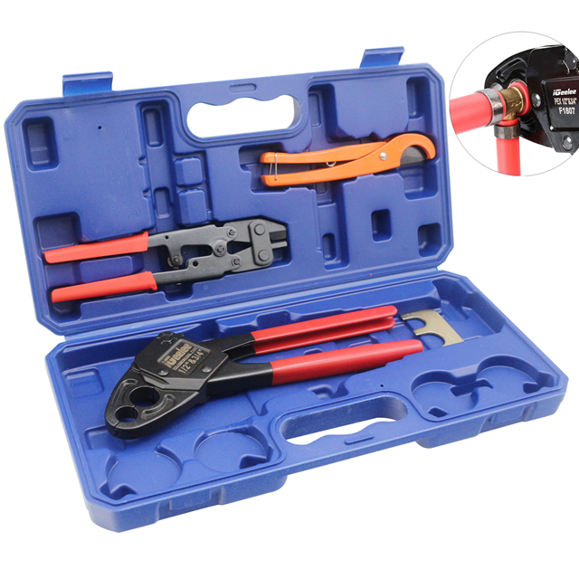 HOME > PRODUCTS > IGeelee Combo Angle Head PEX Pipe Crimper Kit IG-1234A for 1/2″ & 3/4″ for All US F1807 Standards Copper Rings